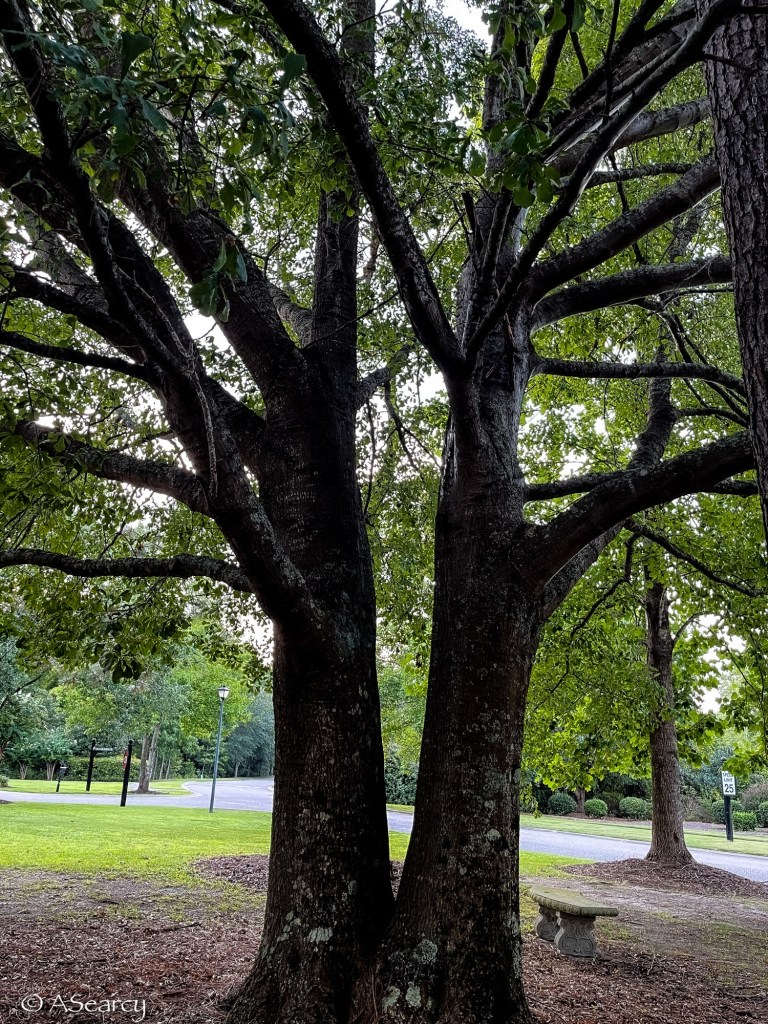 When two trees are joined together like this one pictured below, it’s called inosculation. The trees themselves… trunks, roots and branches physically morph into one. The location of the where they connect can be different. My photo capture shows them morphing at the base. Inosculation happens when the friction between two trees causes the outer bark of each tree to scrape off at the point of contact… creating an opening to connect together .