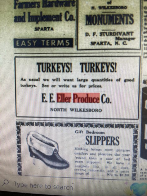 In the early 1900’s, our building was known to all the residents of Wilkes as EE Eller Produce. Mr. Eller was a major poultry buyer/ dealer where local folks would bring in chickens, and turkeys for processing.