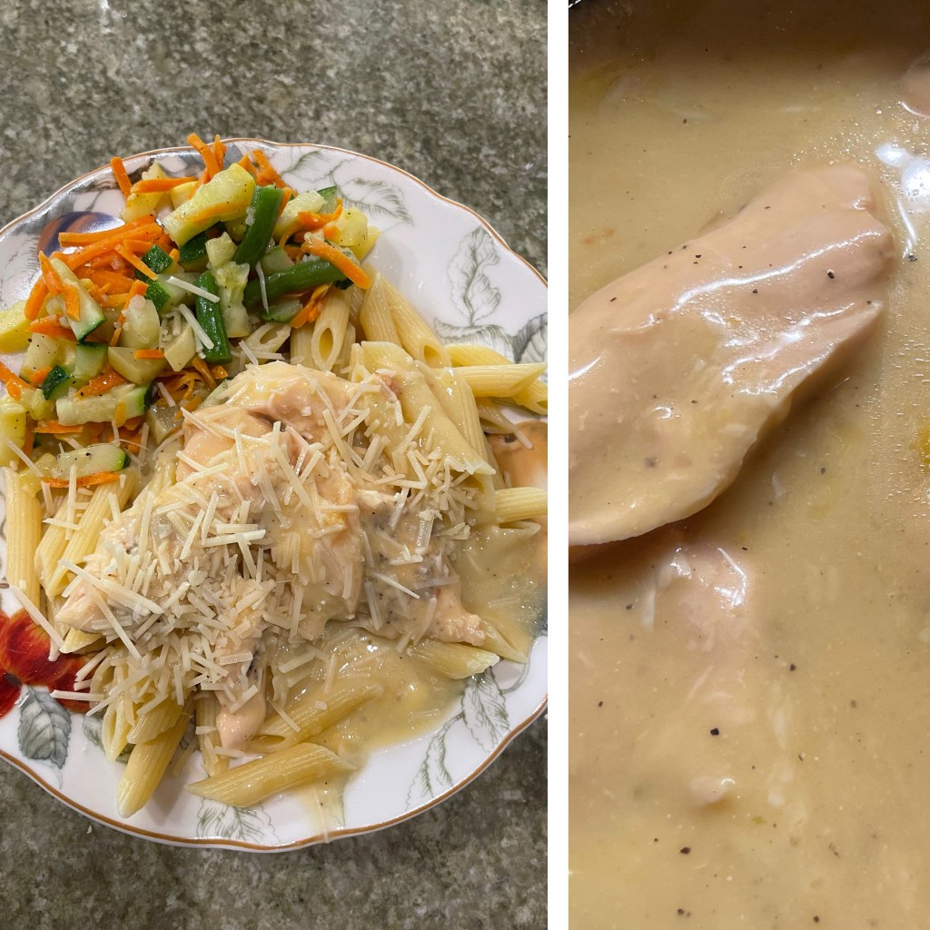 This creamy chicken crock-pot recipe is one of the most versatile dishes that I make that can be used as a base for chicken pie, chicken casserole, or served over pasta. The leftovers can make a creamy chicken soup.