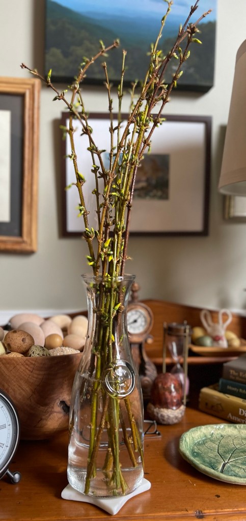 I recently read that the word Forsythia is related to anticipation. Yes, I get that… the anticipation of SPRING… Beautiful, joyful things yet to come.