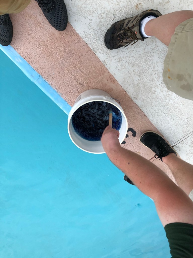 Everyone pitched in and helped with keeping the pool water clean, and clear…all the while, maintaining that beautiful, wavy-blue color. We wanted to be ready to swim all summer long with NO green slimy algae growing. It was a lot of work! Scrubbing the side walls, vacuuming the pool, scooping leaves, whatever needed to be done🤪.