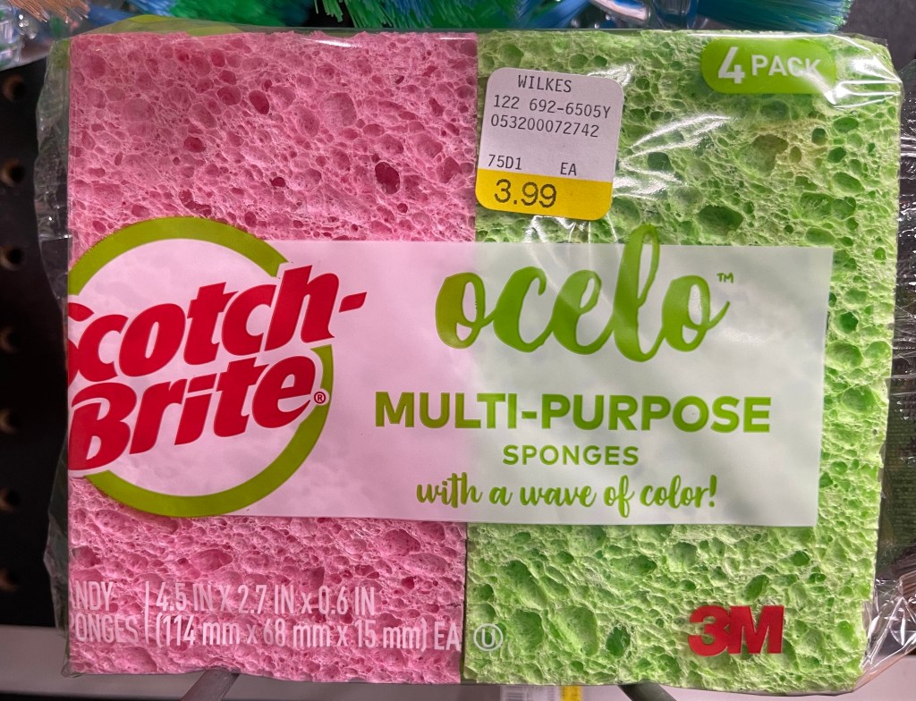 Sponges! Available at Wilkes County Hardware. Sponges have a short lifespan in the kitchen. When they start to “smell” they need to go away to the trash. The average lifespan is 2 weeks to 30 days depending on how often it is sanitized/ used.